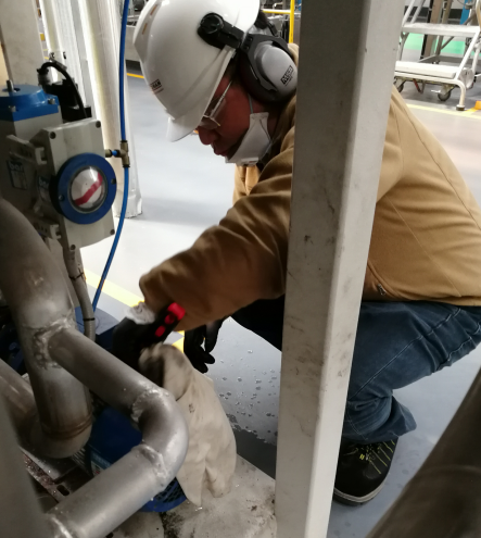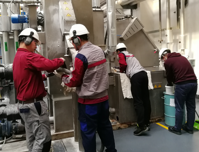 安全培訓(xùn)完成之后,發(fā)放PPE,大家邁著矯健的步伐開赴生產(chǎn)現(xiàn)場,離心甩干機旁。各個小組正在集合各自組員。