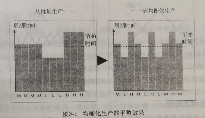 在理想狀況下,豐田會(huì)確實(shí)依照接到訂單的順序來(lái)生產(chǎn)車(chē)輛。但實(shí)際上,由于工作內(nèi)容不同,也就是制造不同產(chǎn)品所需要的總時(shí)間不同,因此無(wú)法像在理想狀況下那樣行事,必須通過(guò)均衡化生產(chǎn)來(lái)協(xié)調(diào)。通過(guò)均衡化生產(chǎn),生產(chǎn)期間的真正需求可以被人為地均衡化,進(jìn)而創(chuàng)造出穩(wěn)定的“拉動(dòng)”速度與產(chǎn)品組合。