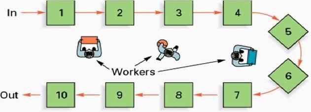 機(jī)加工車間的勞動(dòng)組織方式側(cè)重研究人的因素,研究生產(chǎn)工人的勞動(dòng)分工和協(xié)作以及如何發(fā)揮勞動(dòng)者的效率問(wèn)題。合理組織生產(chǎn)過(guò)程,就是要對(duì)各工藝階段和各工序的工作進(jìn)行合理的安排,使生產(chǎn)過(guò)程在時(shí)間和空間上很好地結(jié)合起來(lái),使生產(chǎn)在生產(chǎn)過(guò)程中行程短、時(shí)間省、耗費(fèi)小、效益高。