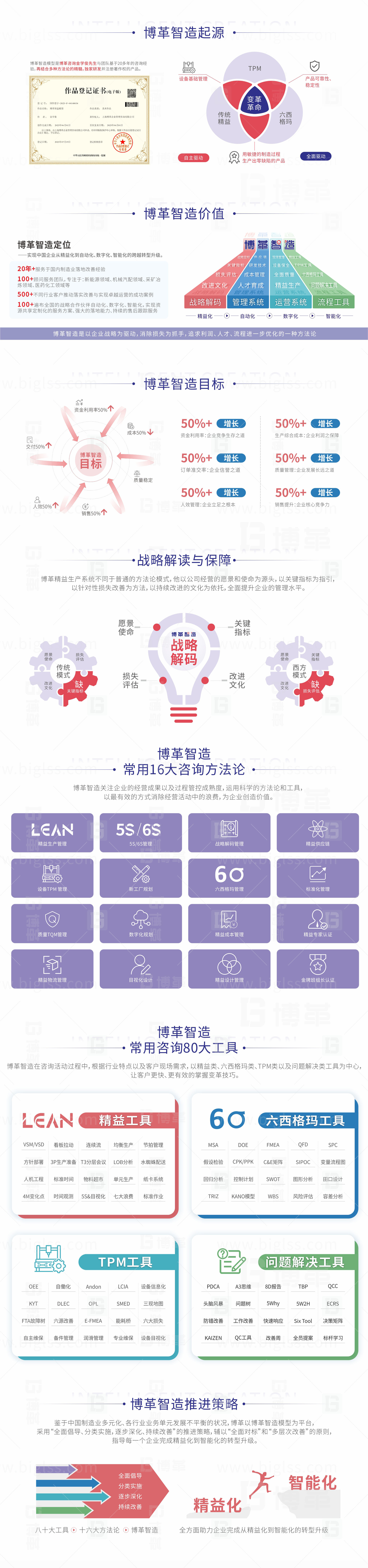 經(jīng)過20多年的沉淀和實踐,上海博革咨詢總結出適合國內(nèi)制造型企業(yè)精益管理變革的模型BPS。下面的“精益生產(chǎn)推進8大步驟”是從BPS模型中導出的,適合國內(nèi)絕大部分機械行業(yè)的精益生產(chǎn)推進方法。