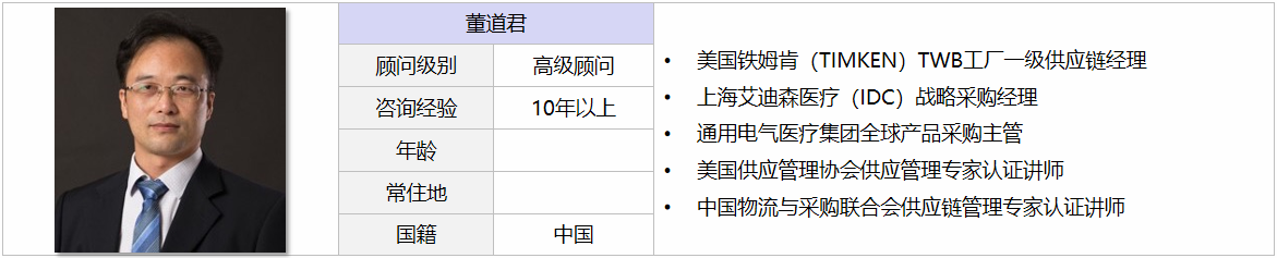 全球500強(qiáng)外企工作實(shí)戰(zhàn)經(jīng)驗(yàn),職業(yè)領(lǐng)域涉及的行業(yè)包括醫(yī)療設(shè)備、汽車零部件、工業(yè)電氣、機(jī)械制造、國際貿(mào)易等;對(duì)企業(yè)采購與供應(yīng)鏈管理各個(gè)環(huán)節(jié)都非常熟悉,為企業(yè)診斷問題并提出優(yōu)化方案,有效幫助企業(yè)實(shí)現(xiàn)降本增效;擁有10年的采購與供應(yīng)鏈培訓(xùn)經(jīng)驗(yàn),培訓(xùn)場(chǎng)次超過300場(chǎng),參訓(xùn)學(xué)員超過10,000人。