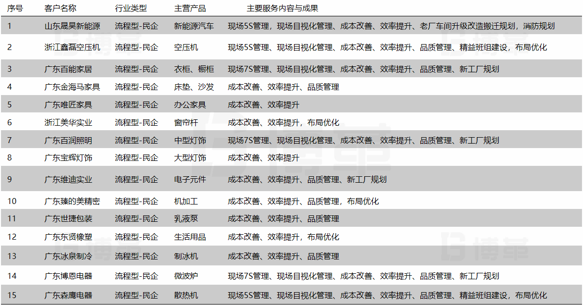 某電器行業(yè):單班產(chǎn)量提升35%,人員低減20%。 熟悉行業(yè):電子與半導(dǎo)體行業(yè)、家電與電氣行業(yè)、家居、裝備與機(jī)械制造業(yè)、新能源汽車;