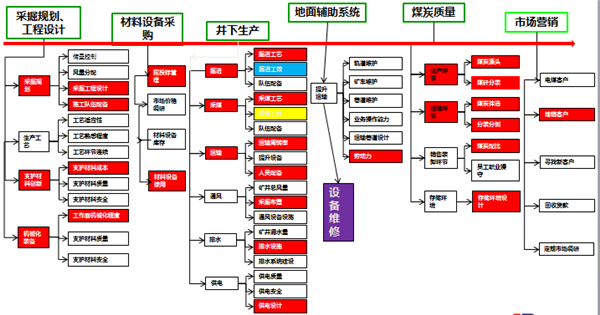 ?學習從煤礦生產環(huán)節(jié)找影響因素;繪制生產工序、環(huán)節(jié)流程圖,從各環(huán)節(jié)中尋找“七種浪費”,初步掌握價值鏈分析方法;