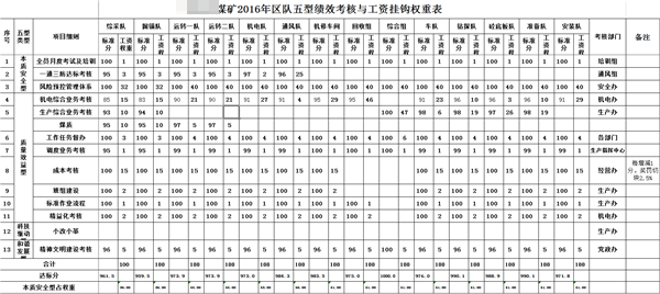 加大區(qū)隊材料成本考核的工資掛鉤權重。項目權重保持15%不變,但工資權重由1%提高到2.5%,相當于材料考核在全部五型績效考核項目中所占的權重達到了37.5%,以此調動各級人員節(jié)支降耗的積極性。2016年1-5月份材料費  11.61元/噸,比作業(yè)計劃降低2.85元/噸,降幅為19.7%,比年度均衡預算降低5.57元/噸,降幅為32.4%。