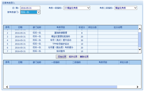 2016年1月份開始,精益化管理正式調整為一級考核指標,工資權重5%,不同單位按照專業(yè)不同下設二級指標,考慮到考核平衡性問題,不同單位根據(jù)精益化管理提升空間和考核指標數(shù)量不同,二級指標數(shù)量、考核指標、二級指標權重比例、五型績效加扣分標準有所區(qū)分。