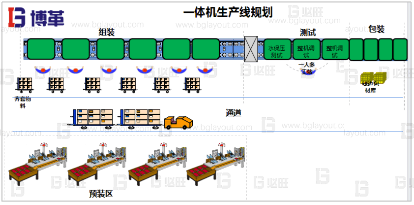 采用模組式作業(yè)模式,由小部裝單元和整機(jī)裝配單元組成,實(shí)現(xiàn)柔性生產(chǎn)、保證工廠人均產(chǎn)值高效產(chǎn)出。