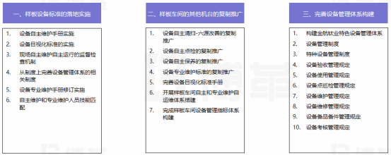 回顧TPM管理推進(jìn)過程,博革咨詢有一套完善的推進(jìn)方式,每個項目初期都會建立項目管理制度,搭建推進(jìn)TPM的組織架構(gòu),以行之有效的辦法激勵員工積極參與到項目中來,同心同力打贏關(guān)鍵設(shè)備攻堅戰(zhàn)。