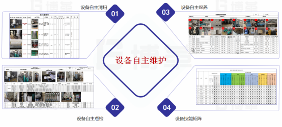 第二步建立健全設(shè)備自主維護(hù)標(biāo)準(zhǔn),完善自主維護(hù)分類:自主清掃、自主點檢、自主保養(yǎng),通過規(guī)范設(shè)備管理自主維護(hù)行為,讓所有員工清晰認(rèn)識到設(shè)備是自己的、小問題不解決一定會變成大問題,同時通過自主維護(hù)的自主清掃、自主點檢、自主保養(yǎng)的技能梳理,形成員工自主維護(hù)技能矩陣,將技能不足的人員列培訓(xùn)計劃進(jìn)行培訓(xùn)。