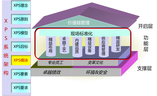 “XPS持續(xù)變革系統(tǒng)”是以集團(tuán)及下屬企業(yè)戰(zhàn)略為導(dǎo)向,結(jié)合企業(yè)運(yùn)營的具體情況,運(yùn)用世界上最行之有效的績效改善工具和方法,幫助企業(yè)建立和完善高效的運(yùn)營系統(tǒng)和模式,使企業(yè)在產(chǎn)品創(chuàng)新、流程創(chuàng)新、人才培養(yǎng)、利潤創(chuàng)新等方面的績效達(dá)到世界領(lǐng)先水平,并形成與企業(yè)自身文化相融合的持續(xù)改善文化,構(gòu)筑企業(yè)的核心競爭力。