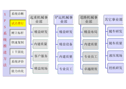 由博革公司對集團(tuán)下屬的重點(diǎn)企業(yè)進(jìn)行XPS現(xiàn)場調(diào)研和診斷,確認(rèn)診斷企業(yè)中最薄弱和最亟待提升的領(lǐng)域,給出推進(jìn)實(shí)施規(guī)劃方案