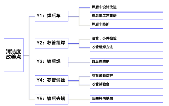 根據(jù)工藝流程分析,確定影響清潔度的因子,并確定對應(yīng)改善方案。