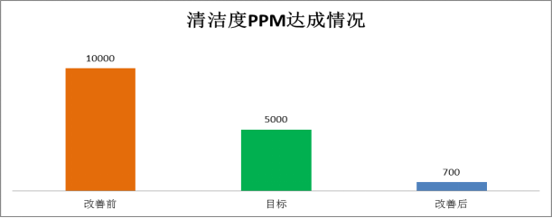 1.項目取得的效果:改善前:清潔度問題(焊后車鐵屑雜質(zhì)、芯管組焊焊瘤、鍍后焊焊瘤、芯管試驗油液污染、鍍后去堵鐵屑)不良率高達(dá)10000PPM,經(jīng)過項目改善,為700PPM,合計年收益約為24萬元,達(dá)成項目目標(biāo)。
