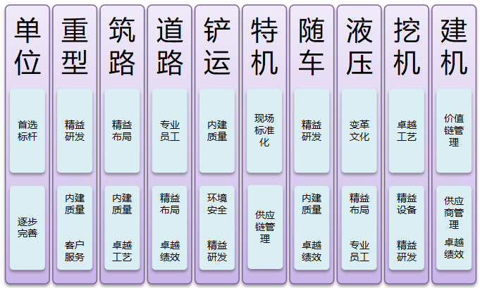 XPS根據(jù)A集團(tuán)及所處行業(yè)的特點(diǎn),建構(gòu)其獨(dú)具特色的模型,以A集團(tuán)十二五戰(zhàn)略目標(biāo)為愿景,制定了世界級(jí)企業(yè)關(guān)注的5大目標(biāo),工程機(jī)械行業(yè)運(yùn)營(yíng)中最重要的12大模塊,提煉出58項(xiàng)要素和235項(xiàng)要求。