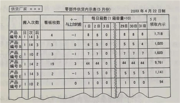 供應(yīng)鏈信息系統(tǒng):豐田公司與供貨廠家 零部件供貨內(nèi)示表