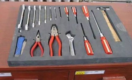 方法2:采用嵌入凹模的方法,使工具、零部件等物品易于取用和歸位。如沒有可用的現(xiàn)成凹模,可以自己動(dòng)手,利用海棉、泡沫或厚質(zhì)的臺(tái)墊,刻劃出物品形狀后,鏤空處理即可。