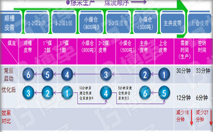 ?優(yōu)化主運(yùn)輸系統(tǒng)“開(kāi)、停”順序,縮短空轉(zhuǎn)待機(jī)時(shí)間,通過(guò)優(yōu)化每天可以增加18分鐘的運(yùn)轉(zhuǎn)時(shí)間,減少27分鐘的空轉(zhuǎn)時(shí)間。