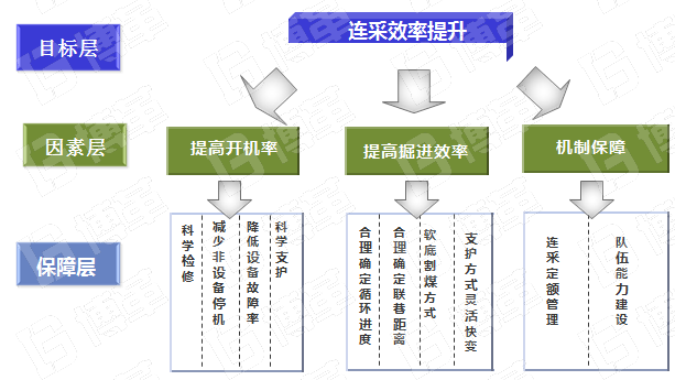 以O(shè)EE指標(biāo)為引導(dǎo),制定了關(guān)鍵路徑法,以提高開(kāi)機(jī)率和性能開(kāi)動(dòng)率為兩條主線,提高設(shè)備綜合利用效率,從而提高綜采產(chǎn)能。
